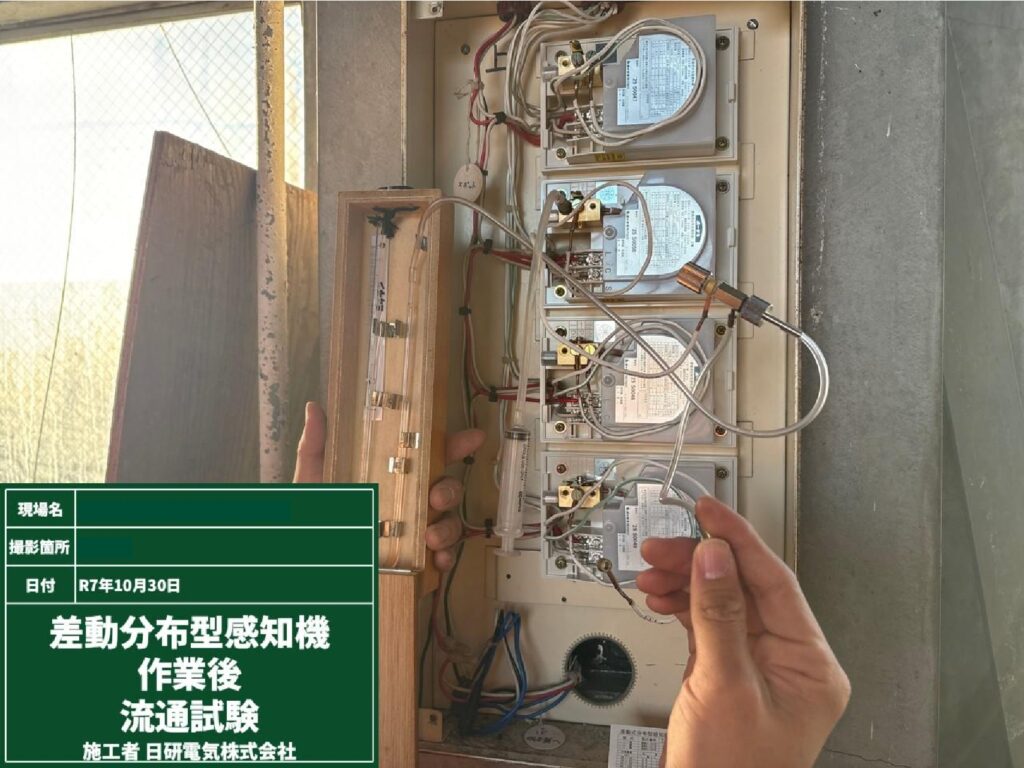 動作不良が確認されたため、検知部である差動式分布型感知器の交換を実施しました。
